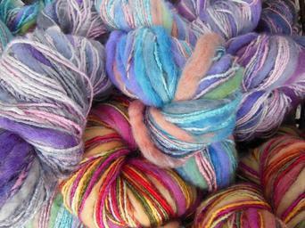 Keywords: yarn colored multi-colored knitting needlework soft woolen purple blue orange red yellow green