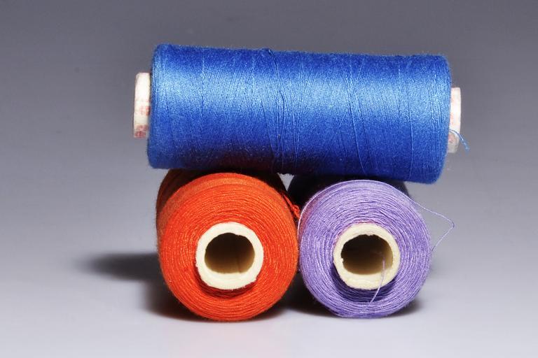 Keywords: yarn thread still life colors shadow light blue red purple reels