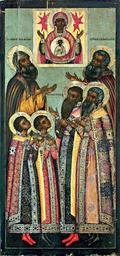 | Keywords: Yaroslavl princes (17-18 c., Yaroslavl museum).jpg ru Изб анные святые в молении пе ед иконой Богомате и Знамение я ославские чудотво цы князья Феодо Давид Константин Василий и Константин и п еподобный Александ Сви ский 110 8 × 52 см Я ославский художественный музей Я ославль Россия http //www icon-art info/masterpiece php lng ru mst_id 1783 Изоб ажение восп оизводится по изданию Похвала Богомате и Иконы Я ославля XIII XX веков из соб ания Я ославского Художественного музея Каталог выставки / Авт -сост О Б Кузнецова и А В Федо чук Севе ный Паломник 2003 author Конец XVII начало XVIII вв PD-Art original upload log wikitable date/time username resolution size edit summary ---- 2009-04-04T09 19 28Z User Berillium 800×1710 342 62Kb <nowiki> ru Изб анные святые в молении пе ед иконой Богомате и Знамение я ославские чудотво цы князья Феодо Давид Константин �</nowiki> Icons of Yaroslavl Icons of princes of Yaroslavl Icons of saints - B Icons of saints - A Icons in Yaroslavl Art Museum Theotokos of the Sign Icons of saints with Maria on the top |