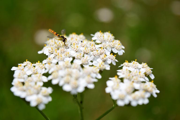 Keywords: yarrow summer fly nature insect flower meadow macro white blossom bloom close