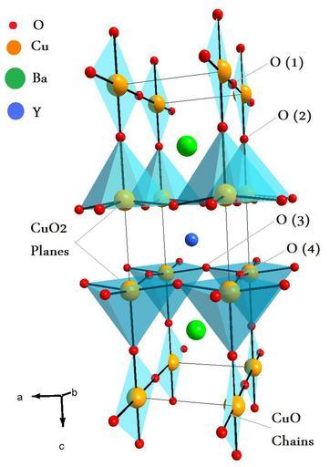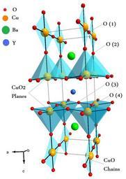 | Keywords: Ybco.jpg YBa2Cu3O7 png Ybco002 svg en Unit Cell Structure of YBa<sub>2</sub>Cu<sub>3</sub>O<sub>7</sub> compound using polyhedrons to denote relationship of oxygen atoms to the metal atoms Haj33 Haj33 2009-12-12 Crystal structures of yttrium barium copper oxide |