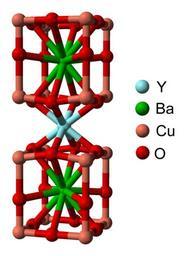 | Keywords: YBCO-unit-cell-3D-balls.png Ball-and-stick model of the unit cell of the high-temperature superconductor yttrium barium copper oxide YBa<sub>2</sub>Cu<sub>3</sub>O<sub>7-<math>\delta</math></sub> X-ray crystallographic data from cite journal Acta Cryst C46 3 1990 354-358 10 1107/S0108270189006803 Untwinned single crystals of the high-temperature superconductor YBa<sub>2</sub>Cu<sub>3</sub>O<sub>7-<math>\delta</math></sub> K Brodt H Fuess E F Paulus W Assmus and J Kowalewski Model constructed in http //www crystalmaker com/ CrystalMaker 8 1 Image generated in http //accelrys com/products/discovery-studio/visualization/discovery-studio-visualizer html Accelrys DS Visualizer Own 2009-02-09 Ben Mills Benjah-bmm27 Images by Ben Mills Crystal structures of yttrium barium copper oxide Unit cells |