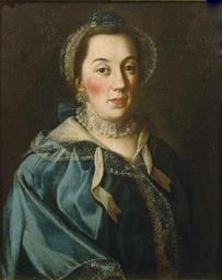 | Keywords: Yelizaveta Buturliina by Antropov.jpg Portrait of female Countess Yelizaveta Franzevna Buturliina ru Елизавета Ф анцовна Буту лина у Санти 1739-1810 дочь действительного тайного советника г афа Ф анца атвеевича Санти 1683 1758 и П асковьи Пет овны Тата иновой была замужем за б игади ом ихаилом Дмит иевичем Буту линым 1733-1794 1763 oil Institution State Historical Museum скан other versions PD-old-100 DEFAULTSORT 1763; Yelizaveta Buturliina Alexey Antropov 18th-century portraits in the Moscow State Historical Museum House of Buturlin House of Santi 1760s portrait paintings 1760s portrait paintings of Russia female 1763 portrait paintings 18th-century oil portraits of women at bust length 18th-century oil portraits of women at half length 18th-century portrait paintings in Russia 18th-century women of Russia Blue clothing in art female Females with earrings in art Females with chokers in art Lace caps in art Portrait paintings with neutral background |
