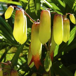 Keywords: yellow blossom bloom bright illuminated exotic tropical lantern like oblong hanging tubular tube like kalanchoe pinnata kalanchoe thick sheet greenhouse crassulaceae goethe plant succulent