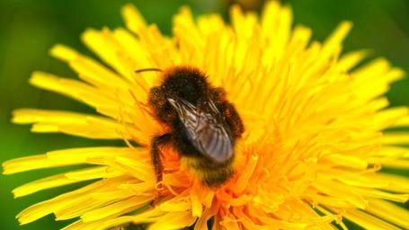 Keywords: yellow flower bee macro pollination