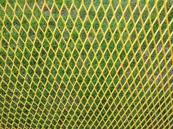Keywords: yellow nets patterns designs diamond shaped shapes abstracts outdoors gardens greenery lawns leafy leaves green backgrounds yards playgrounds geometric symmetrical symmetry network lines wires wired