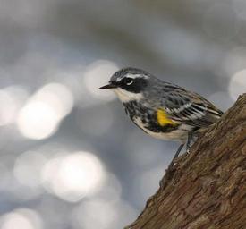 Keywords: yellow rumped warbler bird perched wildlife nature portrait tree wild outdoors looking