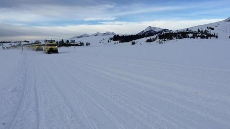 Keywords: The last trip for the Xanterra Bombardier snowcoaches. Swan Lake Flats; Jim Peaco; March 1, 2016 The last trip for the Xanterra Bombardier snowcoaches. Swan Lake Flats; Jim Peaco; March 1, 2016