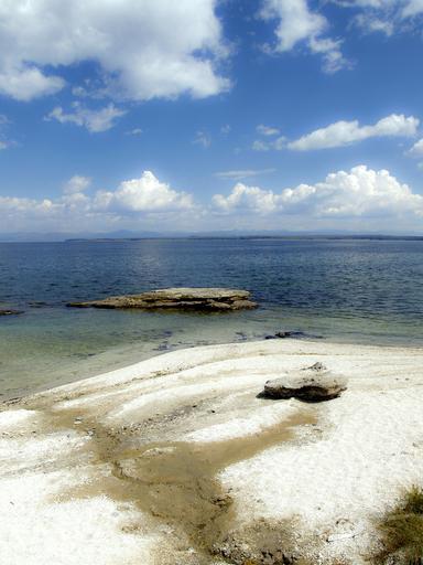 Keywords: yellowstone lake wyoming usa landscape scenery tourist attraction erosion geyser nature volcanic minerals water steam volcanism hot geothermal