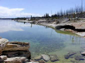 Keywords: yellowstone lake wyoming usa water blue lake scenery landscape nature rocks shoreline countryside