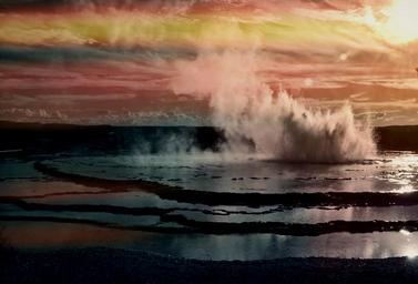Keywords: yellowstone national park geyser usa nature hot volcanic steam volcanism natural spectacle hot source water vapor landscape water water fountain inject fountain farbenspiel dusk sky sky colors