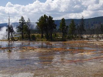 Keywords: yellowstone national park wyoming usa landscape scenery tourist attraction erosion steaming geyser nature volcanic minerals water steam volcanism hot geothermal pond colorful