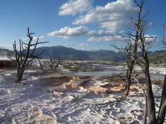 Keywords: yellowstone national park wyoming terrace thermal mineral deposit geological formation steam hot water limestone landscape scenery tourist attraction