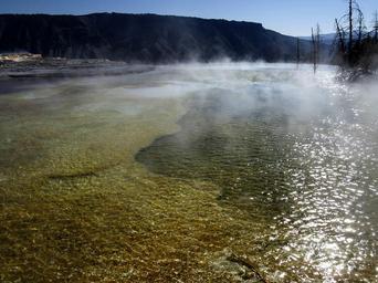 Keywords: yellowstone national park wyoming usa landscape scenery tourist attraction erosion geyser nature volcanic minerals water steam volcanism hot geothermal pond colorful