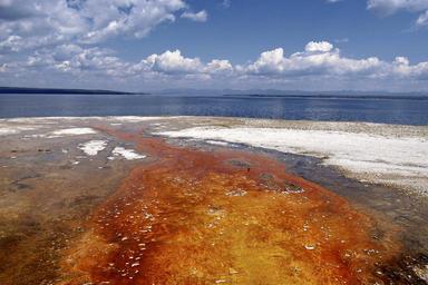 Keywords: yellowstone national park wyoming usa landscape scenery tourist attraction erosion geyser nature volcanic minerals water steam volcanism hot geothermal deep blue pond colorful