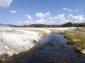 Keywords: yellowstone national park wyoming usa landscape scenery tourist attraction erosion river geyser nature volcanic minerals water steam volcanism hot geothermal pond colorful