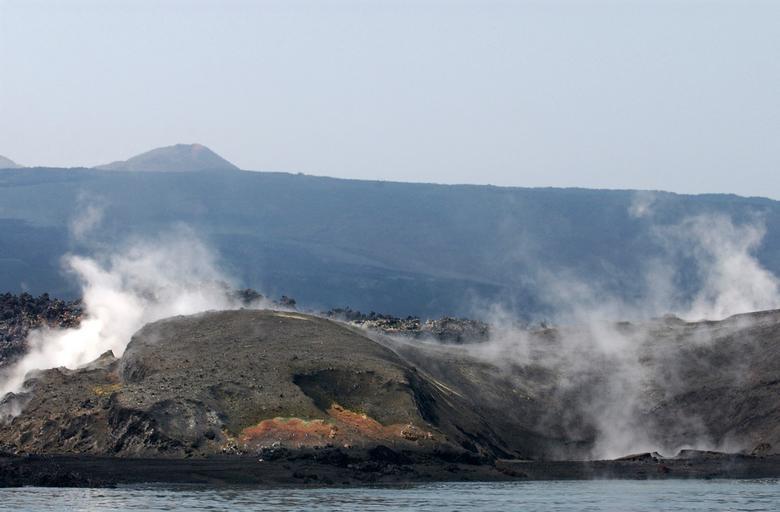 Keywords: yemini coast coastline steam volcanic eruption lave mountains sea ocean water dangerous smoke nature outside