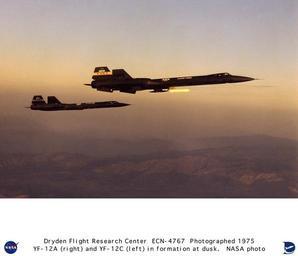 | Keywords: YF-12A and YF-12C in flight formation at dawn DVIDS710202.jpg en The YF-12A 60-6935 carries the coldwall heat transfer pod on a pylon beneath the forward fuselage The pod is seen with its insulating coating intact In the background the YF-12C flies photo chase The coldwall project supported by Langley Research Center consisted of a stainless steel tube equipped with thermocouples and pressure-sensors A special insulating coating covered the tube which was chilled with liquid nitrogen At Mach 3 the insulation could be pyrotechnically blown away from the tube instantly exposing it to the thermal environment The experiment caused many inflight difficulties such as engine unstarts but eventually researchers got a successful flight The Flight Research Center's involvement with the YF-12A an interceptor version of the Lockheed A-12 began in 1967 Ames Research Center was interested in using wind tunnel data that had been generated at Ames under extreme secrecy Also the Office of Advanced Research and Technology OART saw the YF-12A as a means to advance high-speed technology which would help in designing the Supersonic Transport SST The Air Force needed technical assistance to get the latest reconnaissance version of the A-12 family the SR-71A fully operational Eventually the Air Force offered NASA the use of two YF-12A aircraft 60-6935 and 60-6936 A joint NASA-USAF program was mapped out in June 1969 NASA and Air Force technicians spent three months readying 935 for flight On 11 December 1969 the flight program got underway with a successful maiden flight piloted by Col Joe Rogers and Maj Gary Heidelbaugh of the SR-71/F-12 Test Force During the program the Air Force concentrated on military applications and NASA pursued a loads research program NASA studies included inflight heating skin-friction cooling coldwall research a heat transfer experiment flowfield studies shaker vane research and tests in support of the Space Shuttle landing program Ultimately 935 became the workhorse of the program with 146 flights between 11 December 1969 and 7 November 1979 The second YF-12A 936 made 62 flights It was lost in a non-fatal crash on 24 June 1971 It was replaced by the so-called YF-12C SR-71A 61-7951 modified with YF-12A inlets and engines and a bogus tail number 06937 The Lockheed A-12 family known as the Blackbirds were designed by Clarence Kelly Johnson They were constructed mostly of titanium to withstand aerodynamic heating Fueled by JP-7 the Blackbirds were capable of cruising at Mach 3 2 and attaining altitudes in excess of 80 000 feet The first version a CIA reconnaissance aircraft that first flew in April 1962 was called the A-12 An interceptor version was developed in 1963 under the designation YF-12A A USAF reconnaissance variant called the SR-71 was first flown in 1964 The A-12 and SR-71 designs included leading and trailing edges made of high-temperature fiberglass-asbestos laminates The NASA YF-12 research program was ambitious; the aircraft flew an average of once a week unless down for extended maintenance or modification Program expenses averaged 3 1 million per year just to run the flight tests NASA crews for the YF-12 included pilots Fitzhugh Fulton and Donald Mallick anf flight test engineers Victor Horton and Ray Young Other NASA test pilots checked out in the YF-12A included John Manke William Dana Gary Krier Einar Enevoldson Tom McMurtry Steve Ishmael and Michael Swann The YF-12C was only flown by Fulton Mallick Horton and Ray NASA Identifier NIX-ECN-4767 2009-09-23 Glenn Research Center https //www dvidshub net/image/710202 710202 2012-10-10 16 46 WASHINGTON DC US PD-USGov Langley Research Center Images from DoD uploaded by Fæ Lockheed YF-12 in flight |