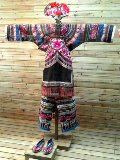 Keywords: Yi woman embroidered clothes - Yunnan Nationalities Museum - DSC04199.JPG Yi woman embroidered clothes Clothing exhibited in the Yunnan Nationalities Museum Kunming Yunnan China I took this photograph 2011-08-13 02 05 02 Daderot Public domain Clothing in the Yunnan Nationalities Museum Yi clothing |