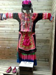 | Keywords: Yi woman embroidered dress - Yunnan Nationalities Museum - DSC04196.JPG Yi woman embroidered dress Clothing exhibited in the Yunnan Nationalities Museum Kunming Yunnan China I took this photograph 2011-08-13 02 04 06 Daderot Public domain Clothing in the Yunnan Nationalities Museum Yi clothing |