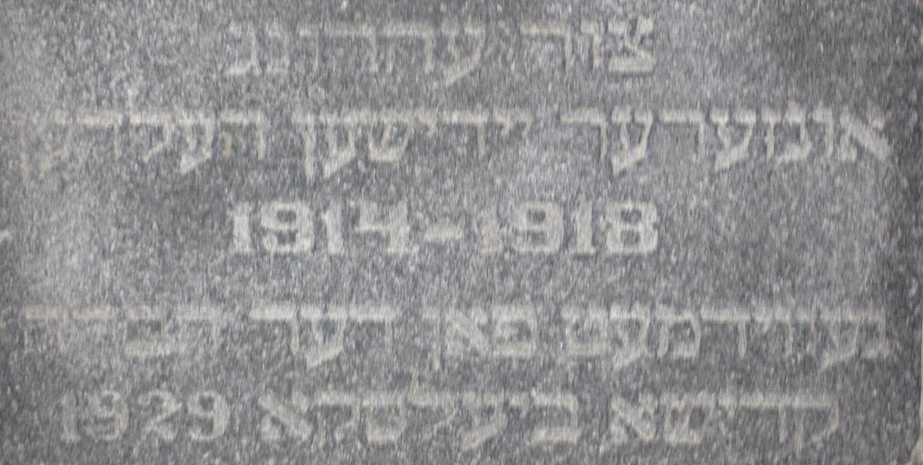 Keywords: Yiddish inscription on jewish cemetery Bielsko-Biała.jpg en Yiddish inscription on monument of soldiers which died during World War I on jewish cemetery in Bielsko-Biała Poland pl Inskrypcja w języku jidysz na pomniku upamiętniającym żydowskich żołnierzy z czasów I wojny światowej cmentarzu żydowskim w Bielsku-Białej own Gaj777 2009-03-29 49 49 3 9 N 19 1 34 7 E Jewish cemetery in Bielsko-Biała Jewish inscriptions in Poland Jewish inscriptions Yiddish inscriptions |