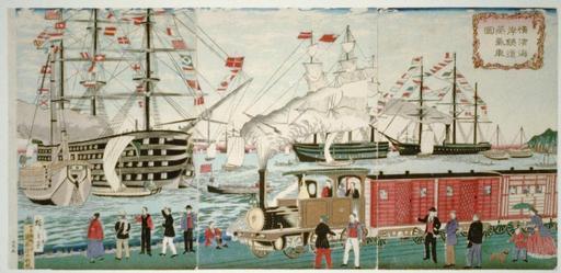 | Keywords: Yokohama Railway 1874.jpg The picture of the steam locomotive railway at Yokohama seaside 横 海岸鉄道蒸気車図 Yokohama Kaigan Tetsudo Jokisha Zu drawn by Utagawa Hiroshige III 三代歌 広重 1874 source 1874 Creator Hiroshige III object history exhibition history credit line accession number LOC-image cph 3b52234 PD-old-100-1923 Trains of Japan Ukiyo-e of rail transport Utagawa Hiroshige III Yokohama in art | ||||