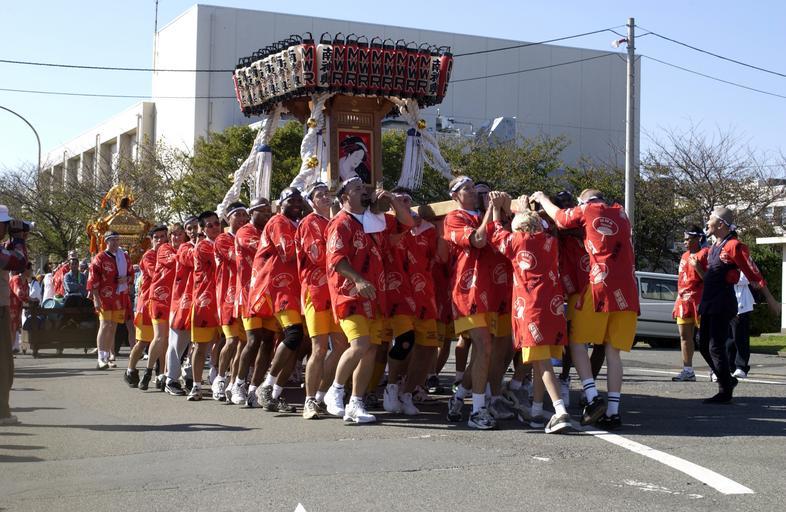 | Keywords: Yokosuka parade.jpg U S Navy sailors carry a Shinto shrine during a 2004 parade in Yokosuka From navy mil 041017-N-0120R-055 YOKOSUKA Japan Oct 17 2004 - Sailors of Fleet Activities Yokosuka participate in a traditional Mikoshi parade held annually in Yokosuka Japan Mikoshis are portable wooden Shinto Shrines that vary in size and are hand-carried through the streets The Mikoshi Day Parade has been held annually throughout the streets of Japan for the last 28 years and Sailors from Fleet Activities Yokosuka have participated in this event for the past 11 years with the ceremony ending on the base track field Navy photo by Photographer's Mate 2nd Class William H Ramsey en wikipedia 2004-10-24 Sekicho wikipedia en PD-USGov Usc original upload log page en wikipedia Yokosuka_parade jpg 2004-10-24 01 22 Sekicho 3008×1960×8 1744904 bytes <nowiki>U S Navy sailors carry a Shinto shrine during a 2004 parade in Yokosuka From navy mil PD </nowiki> Yokosuka Kanagawa Festivals of Japan Sailors from the United States Navy |