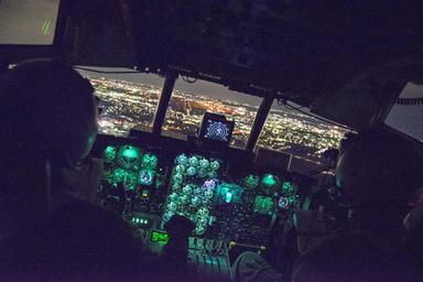 Keywords: Air Force C-130 bilateral operation night vision Yokota Air Base flight loadmaster LCLA Airlift JASDF Yokota AB AF USAF Yokota landing night 374 Airlift Wing night vision goggles cockpit