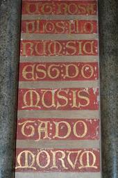 | Keywords: York Minster Chapter House inscription.jpg Latin inscription in the Chapter House of York Minster Ut rosa flos florum sic est domus ista domorum means Like the rose is the flower of flowers so this house is that of houses Own 2007-12-12 Steven Fruitsmaak at request 53 57 43 N 1 4 55 W scale 1000_region GB Chapter house of York Minster Inscriptions in North Yorkshire Latin inscriptions in England | ||||