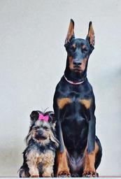 Keywords: yorkshire terrier doberman dogs portrait friendship poesing animals pets