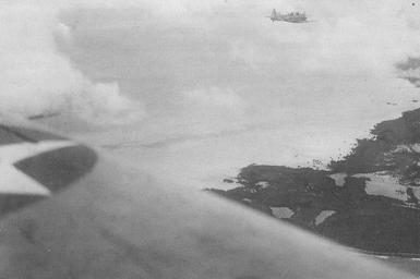 | Keywords: Yorktown aircraft over Makin.jpg en SBD dive bombers from the USS Yorktown CV-5 over Makin Atoll during the February 1942 Marshalls-Gilberts raids Aircraft in background is flown by flight leader LCDR Bill Burch Aircraft in foreground is piloted by Ensign Thomas A Reeves Scanned from book Cressman Robert 2004 That Gallant Ship USS Yorktown CV-5 Pictorial Histories Publishing Company p 61 Photographer's Mate 2nd Class J V Pflaum 1942-02-01 Photograph taken by US Government employee performing official duties PD-USGov-Military-Navy Douglas SBD Dauntless Pacific War in February 1942 Makin |