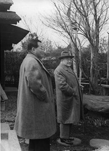 | Keywords: Yoshida and Aso at Kyuka-en.jpg ˆ’ ja å‰ç”°èŒ‚å…ƒç·ç†ï¼ˆå³ï¼‰ã¨å¥³å©¿ã®éº»ç”Ÿå¤ªè³ å‰è¡†è°é™¢è°å“¡ã ‚<br /> en Former Japanese Prime Minister Shigeru Yoshida 1878 “1967 in office 1946 “57 and 48 “54 and his son-in-law Rep Takakichi Aso http //park zero ad jp/~zbj65728/celebrities/yoshida/kyukaen/kyukaen htm 1955å¹´2æ ˆ9æ—¥ / 9 February 1955 ä¹ é žå ’ / KyÅ«ka-en PD-Japan-oldphoto <gallery> Image Yoshida and Aso at Kyuka-en_cropped jpg a cropped version </gallery> Shigeru Yoshida | ||||