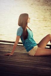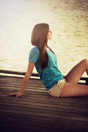 Keywords: young girl pretty beauty hair relaxing resting stylish water outdoors female summer