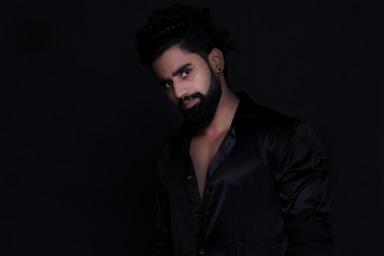 Keywords: young man beard black shirt style sexy face elegance sensuality black background hair model person emotions expression model fashion fashion model young hair hair fashion model portrait posing studio modern stylish glamour pose