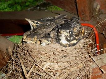 | Keywords: Young Robins 02.jpg en Young American Robins in a nest about a week and a half old Taken in Delaware County New York USA 2012-05-31 own GeekOnTheWing I Geek On The Wing am the creator of this image and I hereby release it to the public domain cc-zero Turdus migratorius nests with chicks Uploaded with UploadWizard |
