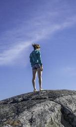Keywords: young woman windy rock mountain sky girl mount monadnock