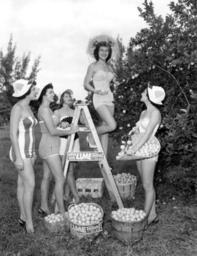 | Keywords: florida state library and archives of florida statelibraryandarchivesofflorida key lime festival keylimefestival key largo keylargo monroe county monroecounty models modeling young women youngwomen bathing suits bathingsuits swim suits swimsuits groves key lime grove keylimegrove key limes keylimes agriculture department of commerce collection departmentofcommercecollection 1950s joanne byrum joannebyrum carolyn smith carolynsmith barbara kaufman barbarakaufman dorothy albury dorothyalbury jackie sweeting jackiesweeting florida keys floridakeys islands blackandwhite monochrome outdoor black and white Persistent URL: www.floridamemory.com/items/show/71908 Local call number: C018802 Title: Young women modeling in a grove during the Key Lime Festival: Key Largo, Florida General note: From left to right: Joanne Byrum, Key Largo, Princess; Carolyn Smith, Islamarada, Princess; Barbara Kaufman, Islamarada, Princess; Dorothy Albury, Islamarada, Queen; and Jackie Sweeting, Islamarada, Princess. Date: November 13, 1953 Physical descrip: 1 photoprint - b&w - 4 x 5 in. Series Title: Department of Commerce Collection Repository: State Library and Archives of Florida, 500 S. Bronough St., Tallahassee, FL 32399-0250 USA. Contact: 850.245.6700. Archives@dos.myflorida.com Persistent URL: www.floridamemory.com/items/show/71908 Local call number: C018802 Title: Young women modeling in a grove during the Key Lime Festival: Key Largo, Florida General note: From left to right: Joanne Byrum, Key Largo, Princess; Carolyn Smith, Islamarada, Princess; Barbara Kaufman, Islamarada, Princess; Dorothy Albury, Islamarada, Queen; and Jackie Sweeting, Islamarada, Princess. Date: November 13, 1953 Physical descrip: 1 photoprint - b&w - 4 x 5 in. Series Title: Department of Commerce Collection Repository: State Library and Archives of Florida, 500 S. Bronough St., Tallahassee, FL 32399-0250 USA. Contact: 850.245.6700. Archives@dos.myflorida.com |
