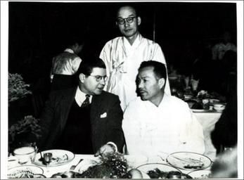 | Keywords: Yun Chi-young and Kim Seongsu and Chairman and AP.jpg Yun Chi-young and Kim Seongsu and Chairman and AP in Doyko 1945 http //weekly1 chosun com/site/data/html_dir/2006/09/01/2006090177019_2 html 1945 PD-Japan-oldphoto Kim Seong-soo Yun Chi-ho |