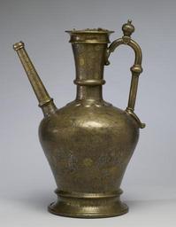 | Keywords: Yunus ibn Yusuf, "al-naqqash al-Mawsili" - Ewer - Walters 54456 - Side A.jpg In a notable artistic innovation medieval Islamic artisans used precious metals- gold silver and copper- to decorate bronze and brass objects The richly decorated surface of this ewer features multiple bands of Arabic inscriptions and scalloped medallions enclosing musicians enthroned figures hunters and other scenes characteristic of medieval Islamic art The presence of the artist's signature here is noteworthy since the medieval Islamic artisan generally remained anonymous Yunus ibn Yusuf styles himself al-naqqash or decorator probably signifying that he was responsible for executing the inlaid designs He also ends his name al-Mawsili meaning from Mosul a famous metalworking center in northern Iraq However Yunus ibn Yusuf could just as easily have been working in Syria where metal workshops produced similar inlaid vessels during the 13th century between 1246 1247 AH 644 Crusader brass with silver inlay cm 44 5 31 8 16 5 accession number 54 456 22888 Dikran Kelekian New York and Paris Henry Walters city Baltimore Walters Art Museum Henry Walters Acquired by Henry Walters 1917 Signature Yunus ibn Yusuf al-naqqash al Mawsili; Date A H 644; Translation Glory to our lord the sultan the royal Exhibition of Persian Art Iranian Institute New York 1940 Highlights from the Collection The Walters Art Gallery Baltimore 1998-2001 place of origin Mosul Iraq Walters Art Museum license Islamic metalwork in the Walters Art Museum Media contributed by the Walters Art Museum needs category review Brass vessels containers |