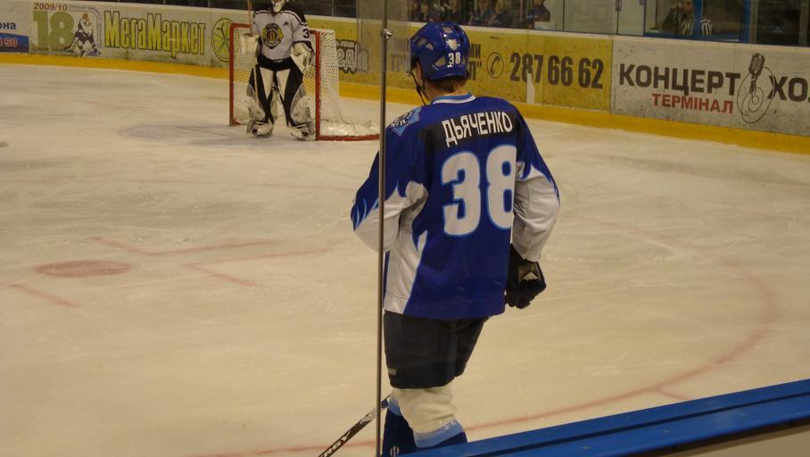 | Keywords: Yuri Dyachenko.jpg en Centre Yuri Dyachenko 38 of the Sokil Kyiv stands during the Belarusian Extraliga game against Khimvolokno at Terminal on March 2 2010 in Brovary Ukraine Sokil won the game 3-2 own AnatolyPm 02 03 2010 Ice hockey forwards from Ukraine Sokil Kyiv players |