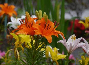 Keywords: yuri lily orange amber white yellow colorful rain flowers stamen pistil drop of water flower bed yokosuka japan