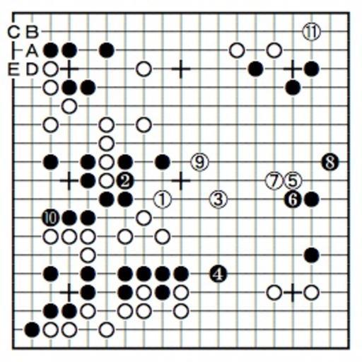 Keywords: Yuzo-shusaku-18531105-62-72.jpg BadJPEG en Ohta Yuzo-Honinbo Shusaku 1853 11 5 62-72 ja 太田雄蔵- 因 策 1853年11 5日 62-72手 Sugitaroが 成 Sugitaro 2011/2/23 Cc-zero Go images Hon'inbō Shūsaku