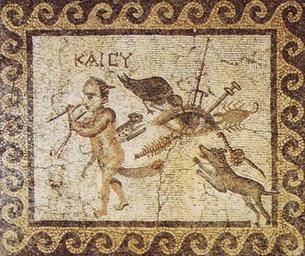 | Keywords: Z40.2Kakos.jpg An evil spirit kakodaimon is depicted alongside the symbol of the evil eye He holds spits is horned or winged browed and has large elongated members which trail between his leg The evil eye is surrounded by a pecking raven trident sword scorpion serpent centipede and dog It is a symbol of misfortune http //www theoi com/Gallery/Z40 2 html C2nd AD En el dominio público porque el autor murió hace más de 70 años PD-Art Kakodaimon and evil eye mosaics Antakya Museum | ||||