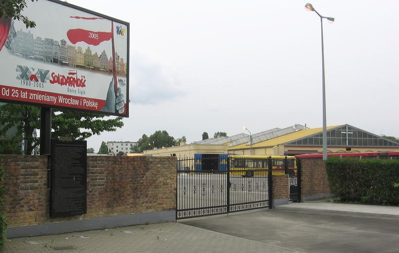 | Keywords: ZajezdniaGrabiszynska-brama.jpg thumb The plaque of rememberance for Wrocław's w Solidarność Solidarność creation in this place 1980 Tablica na pamiątkę utworzenia w tej zajezdni w 1980 wrocławskiej Solidarności Wrocław Poland - Grabiszyńska street public bus depot former tramway depot ul Grabiszyńska Wrocław - zajezdnia autobusowa dawna tramwajowa ; po lewej u dołu granitowa tablica zawierająca 21 postulatów Solidarności z 1980 2006-05-17 own assumed Julo Grabiszyńska bus depot in Wrocław Plaques to Solidarność Grabiszyńska Street Wrocław |