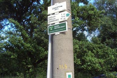 Keywords: Zákupský start.JPG cs Nově instalovaný rozcestník u zákupského vlakového nádraží own Zákupák 2014-06-14 Nádražní Zákupy Hiking and footpath fingerposts in Zákupy End signs of hiking trails in the Czech Republic