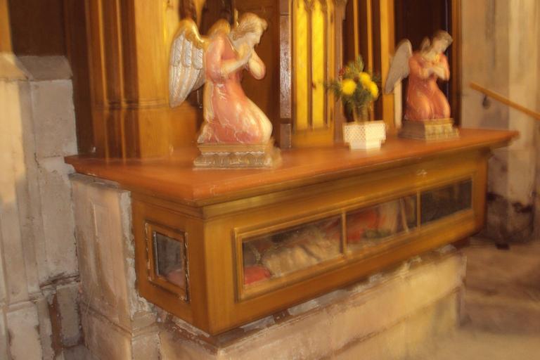 Keywords: Zákupy oltář s relikvií.JPG cs Spodní část pravého oltáře se svatou relikvií own Zákupák 2013-12-01 Interior of the Church of Saints Fabian and Sebastian Zákupy