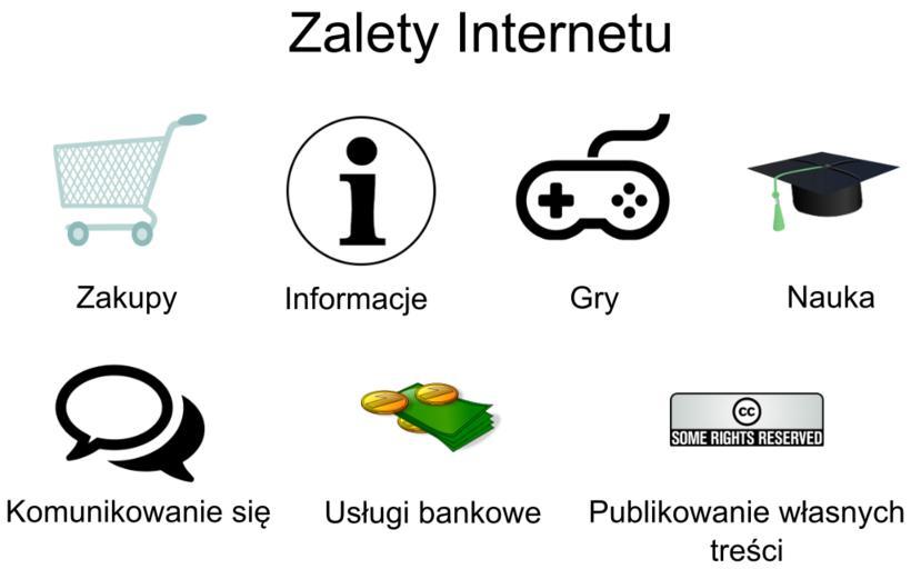 Keywords: Zalety Internetu przekształcone.svg pl Zalety Informacje gry nauka zakupy komunikowanie się usługi bankowe publikowanie własnych treści tekst przekształcony Wiki Lubi e-podręczniki I 12a 2014-04-18 02 09 58 https //commons wikimedia org/wiki/File CC_some_rights_reserved_new_2 svg<br /> https //commons wikimedia org/wiki/File Bills_and_coins svg<br /> https //commons wikimedia org/wiki/File Comments_alt_font_awesome svg<br /> https //commons wikimedia org/wiki/File Student_hat_2 svg<br /> https //commons wikimedia org/wiki/File Video_game_controller_icon_designed_by_Maico_Amorim svg<br /> https //commons wikimedia org/wiki/File Empty_shopping_cart_clip_art svg<br /> https //commons wikimedia org/wiki/File Info_Simple_bw svg CC some rights reserved new 2 svg tkgd2007<br /> Bills and coins svg Unknown vectorization by Mysid<br /> Comments alt font awesome svg Dave Gandy<br /> Student hat 2 svg bocian<br /> Video game controller icon designed by Maico Amorim svg Maico Amorim<br /> Empty shopping cart clip art svg CDC<br /> Info Simple bw svg AnyFile inkscape Custom license marker 2014 04 18 CC some rights reserved new 2 svg pd-ineligible Bills and coins svg WP Clipart Comments alt font awesome svg cc-by-sa 3 0 Student hat 2 svg PD-OpenClipart Video game controller icon designed by Maico Amorim svg PD-author Maico Amorim Empty shopping cart clip art svg PD-USGov-HHS-CDC Info Simple bw svg Uploaded with UploadWizard Uploaded via Campaign e-podreczniki-other Internet diagrams Diagrams in Polish |