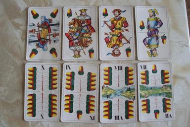 | Keywords: Žaludy v kartách.jpg cs Žaludy na německých kartách own Zákupák 2011-11-20 German decks Complete suits of playing cards laid out Acorn playing cards Deuces of Acorn Kings of Acorn Obers of Acorn Unters of Acorn 10 of Acorn 9 of Acorn 8 of Acorn 7 of Acorn |
