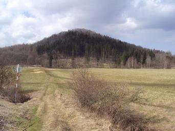 Keywords: Zámecký vrch B.JPG cs Zámecký vrch od České Kamenice own Zákupák 2013-04-13 Zámecký vrch 529 m