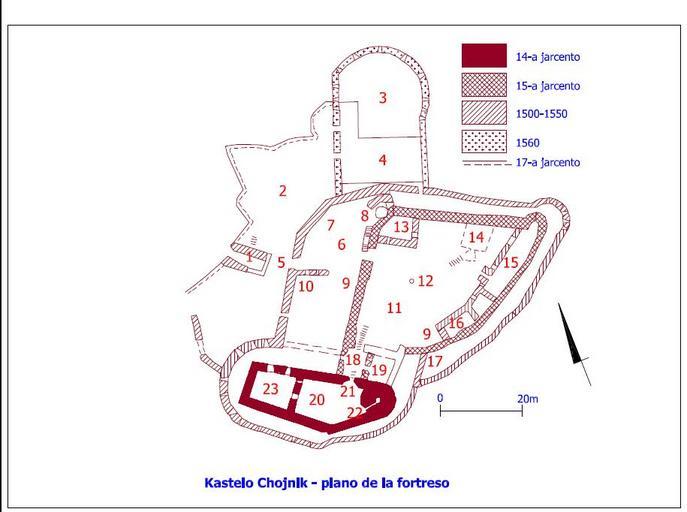 Keywords: Zamek Chojnik plan.JPG Plan zamku Chojnik 1 Baszta bramna 2 Bastion zewnÄ™trzny 3 Basteja północna 4 Schronisko 5 Główna brama wejÅ›ciowa i most zwodzony 6 MaÅ‚y dziedziniec gospodarczy 7 Mieszkanie komendanta zamku 8 Wieża i loch gÅ‚odowy 9 Cysterny z wodÄ… 10 Stajnia 11 Główny dziedziniec zamkowy dolny 12 PrÄ™gierz 13 Sala sÄ…dowa 14 Piwnica 15 Mieszkanie zaÅ‚ogi 16 Kuchnia 17 MiÄ™dzymurze 18 Brama do zamku górnego 19 ArsenaÅ‚ 20 Dziedziniec paÅ‚acowy 21 Kaplica 22 Obronna wieża zamkowa stoÅ‚b 23 Zamkowy budynek mieszkalny paÅ‚ac Kastelo Chojnik - plano de la fortreso 1 La pordega turo 2 La ekstera bastiono 3 La norda turo 4 La turisma Å irmejo 5 La ĉefa pordego kun la levponto 6 La malgranda korto mastruma 7 La sidejo de la komandanto 8 La turo kaj malsatiga karcero 9 La cisternoj kun akvo 10 Ĉevalstalo 11 La ĉefa kastela korto malsupra 12 La pilorio 13 La procesa ĉambrego 14 La kelo 15 La loÄ ejoj por soldatoj 16 La kuirejo 17 La intermurejo 18 La pordego al la supra kastelo 19 La arsenalo 20 La palaca korto 21 La kapelo 22 La defenda kastela turo 23 La kastela loÄ a domo la palaco Own 2008-01-07 Platanacero GFDL ver 1 2 or CC-by-sa ver 2 5 2 0 and 1 0 GFDL Cc-by-sa-3 0-migrated Cc-by-sa-2 5 2 0 1 0 Platanacero Chojnik Castle Drawings of castles in Poland JPG-mapoj Esperante |